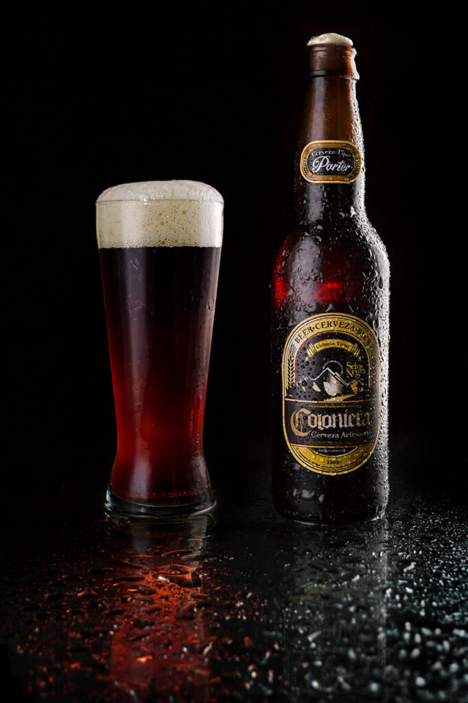I didn’t have my lighting equipment with me that night, so I worked with what I had handy: an iPad screen became my light source. The light passing through the beer was shaped using the flash of my phone and a long exposure.